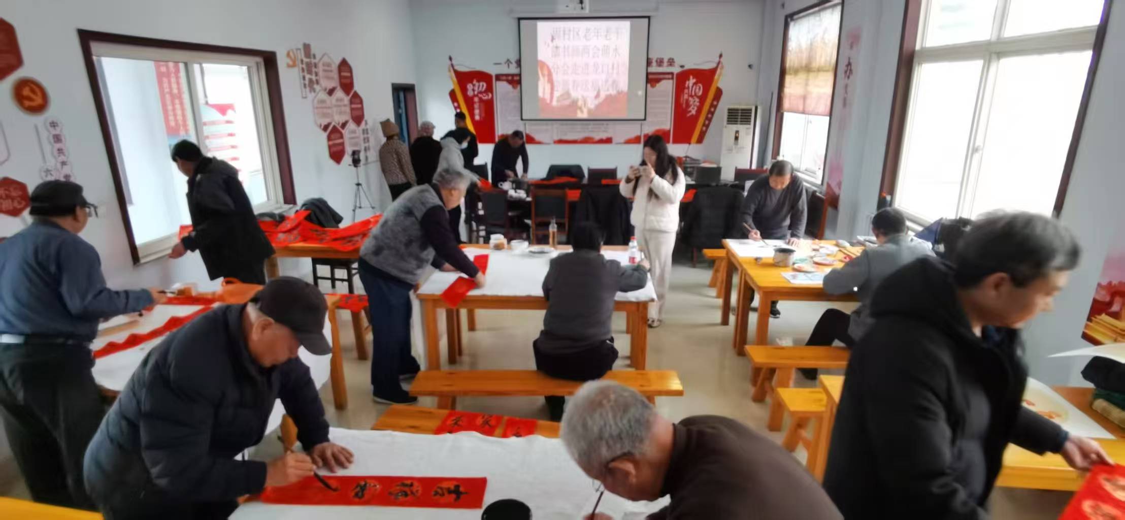 岁末寒冬暖,墨香迎新春。近日,龙口村联合周村区老年老干部书画两会,开展“迎新春 送福字 送春联”文化惠民活动。书画两会会员们以笔墨传情,为村民送上满满年味与真挚祝福。 活动现场墨香氤氲、暖意融融,大红宣纸整齐铺展,笔墨砚台一应俱全。书画两会的老同志们精神矍铄,挥毫泼墨间,书法端庄工整、行书流畅飘逸,一幅幅寓意吉祥的春联、一个个饱满圆润的“福”字跃然纸上,既有对马年新春的美好期许,也有对乡村振兴、阖家幸福的真挚祝愿。部分会员还现场作画,以笔墨描绘新春盛景。 村民们围聚案旁挑选心仪作品,纷纷称赞手写的春联更有温度与年味。此次活动不仅传承了中华优秀传统文化,更以文化为纽带拉近了与群众的距离,为即将到来的春节增添了浓厚喜庆氛围。 | |||