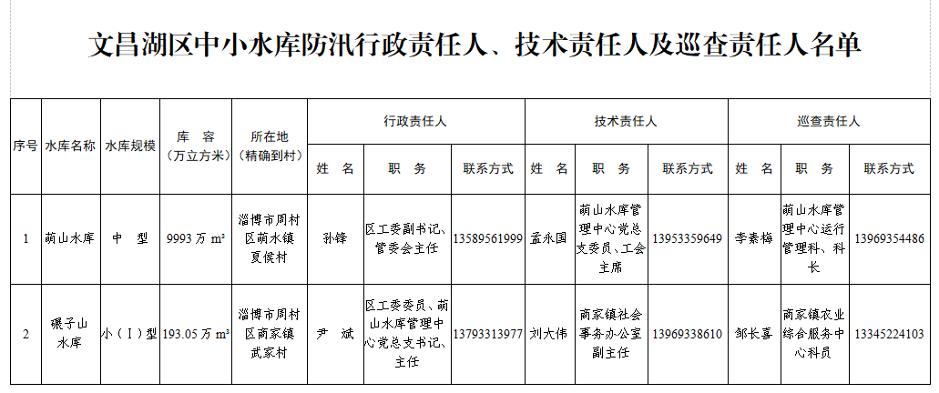 附件:1. 文昌湖区中小型水库防汛行政责任人、技术责任人及巡查责任人名单