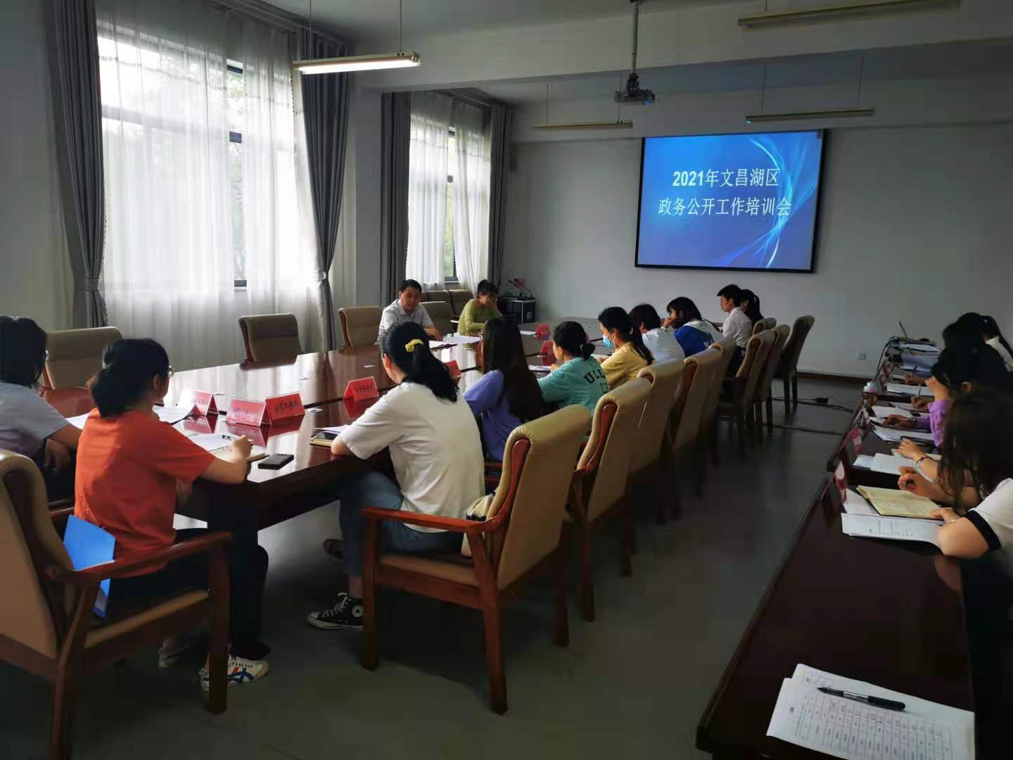 为进一步推进文昌湖区政务公开工作常态化、制度化、规范化,2021年6月18日上午,由区管委会办公室组织召开全区政务公开工作培训会,各镇、各部门、萌山水库管理中心政务公开联络人共计21人参加此次会议。