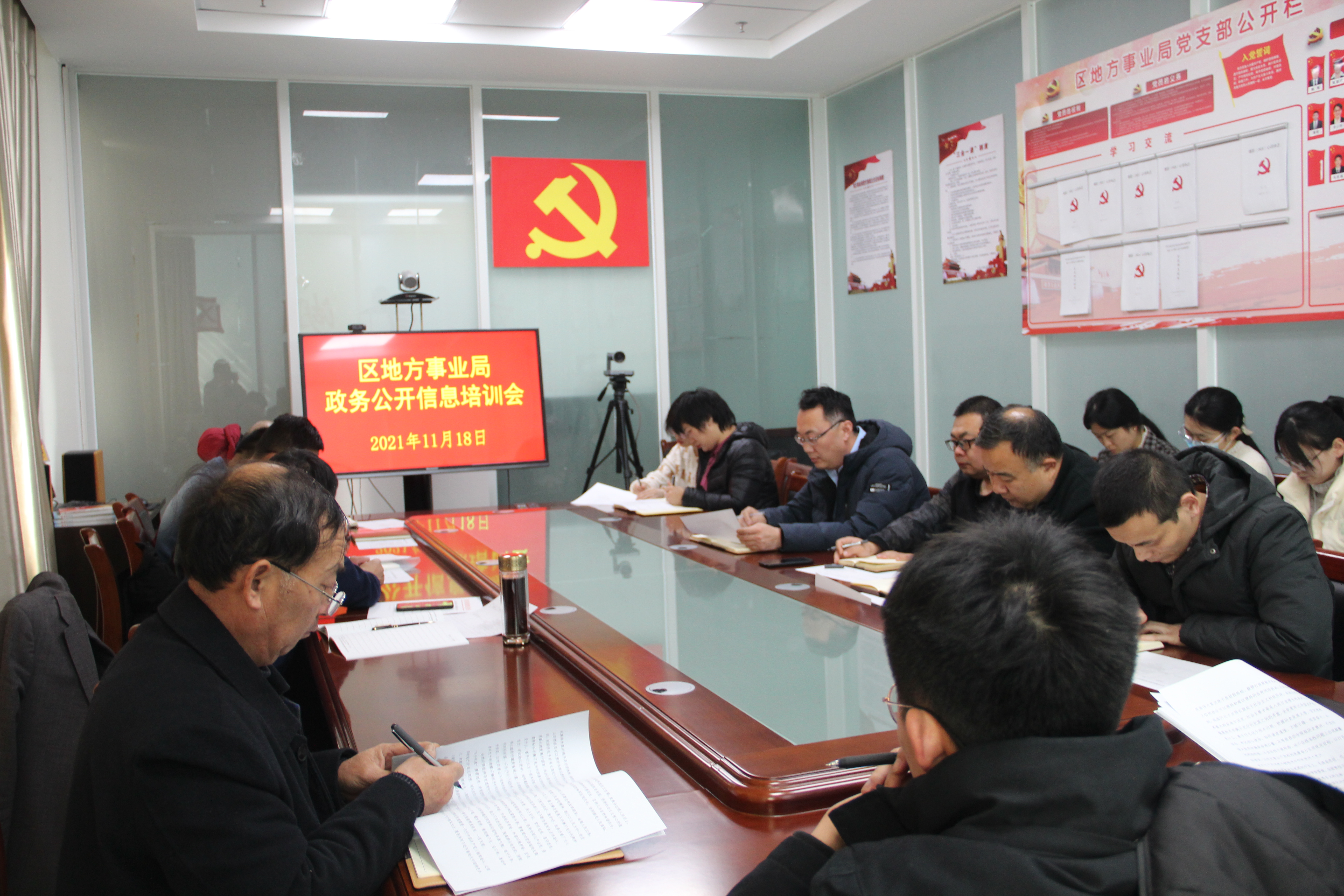 为不断提升我局政务信息公开能力,提高相关工作人员政务信息公开意识,2021年11月18日,区地方事业局在局机关会议室召开了政务公开信息专题会议,局主要负责人、各科室具体负责人员参加此次培训会议。