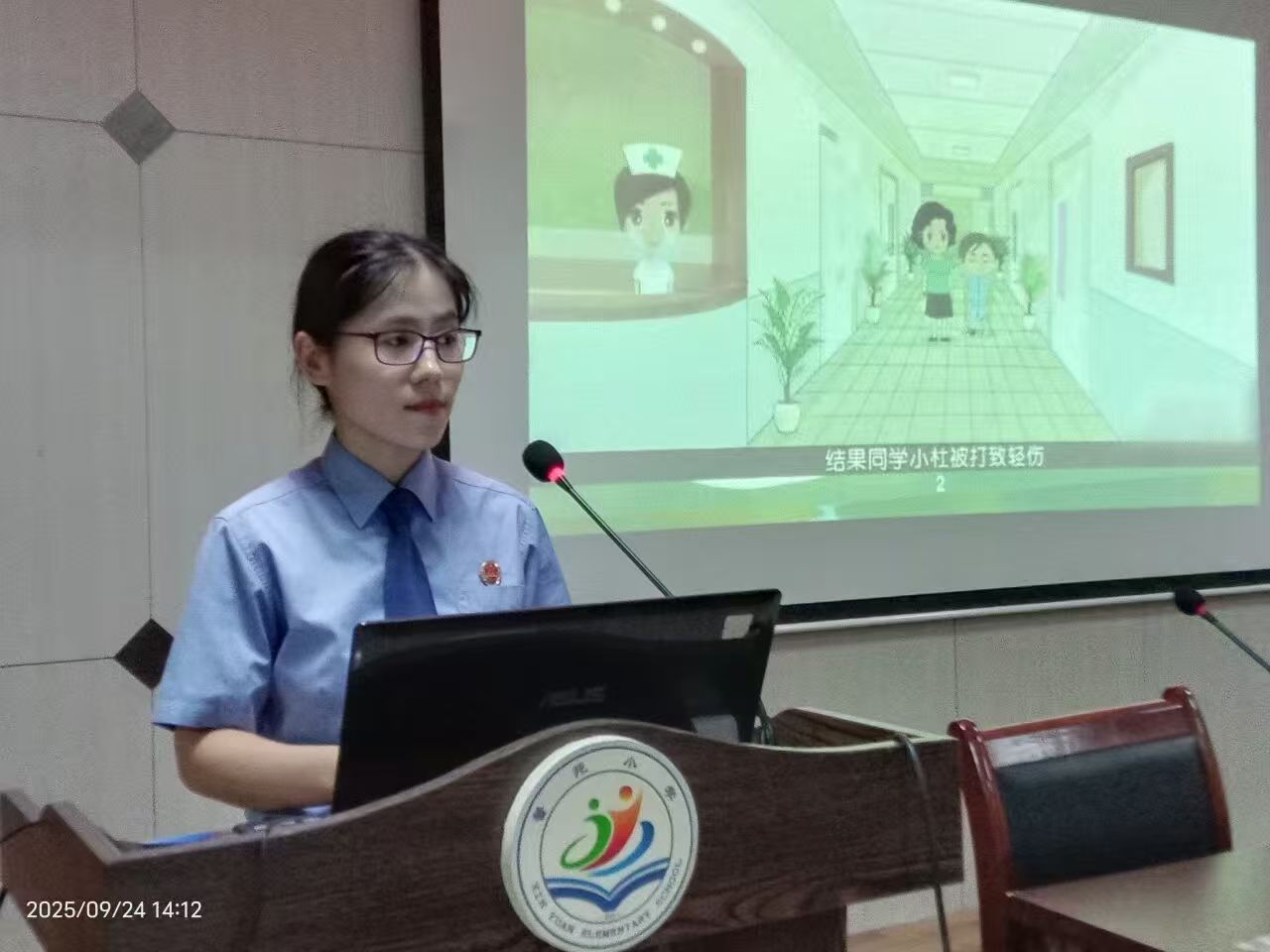 为切实增强青少年法治意识,筑牢校园安全防线,9月24日,周村区检察院“心新护未”法治宣讲团走进馨苑小学,为同学们带来了一场主题为《愿少年的你 远离学生欺凌》的生动法治课。该课程通过互动提问、案例解析、视频观看等多种形式,引导同学们正确认识、勇敢面对、有效防范学生欺凌。