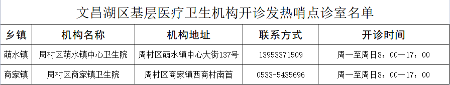 文昌湖区基层医疗机构开展发热哨点诊室名单