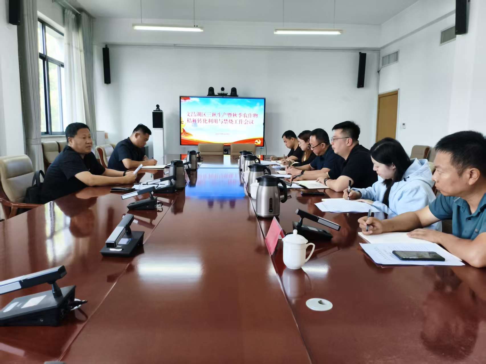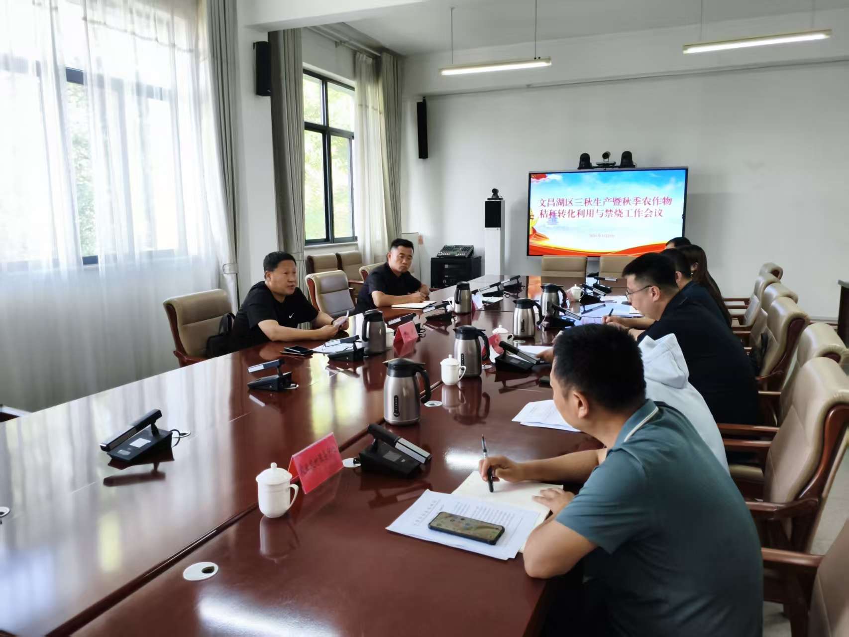 9月29日下午,区领导尹斌同志主持召开文昌湖区三秋生产暨秋季农作物秸秆转化利用与禁烧工作会议,会议传达了上级对切实做好秋季农作物秸秆转化利用与禁烧工作的要求,并对全区工作进行部署。会议强调,全区上下要切实提高站位,以高度的责任感、使命感,担当作为,抓好工作措施落实,全力以赴保证“三秋”生产和秸秆禁烧与综合利用工作顺利开展。区农业农村综合服务中心主要及分管负责同志,区安监环保局、萌水镇、商家镇分管负责同志参加会议.