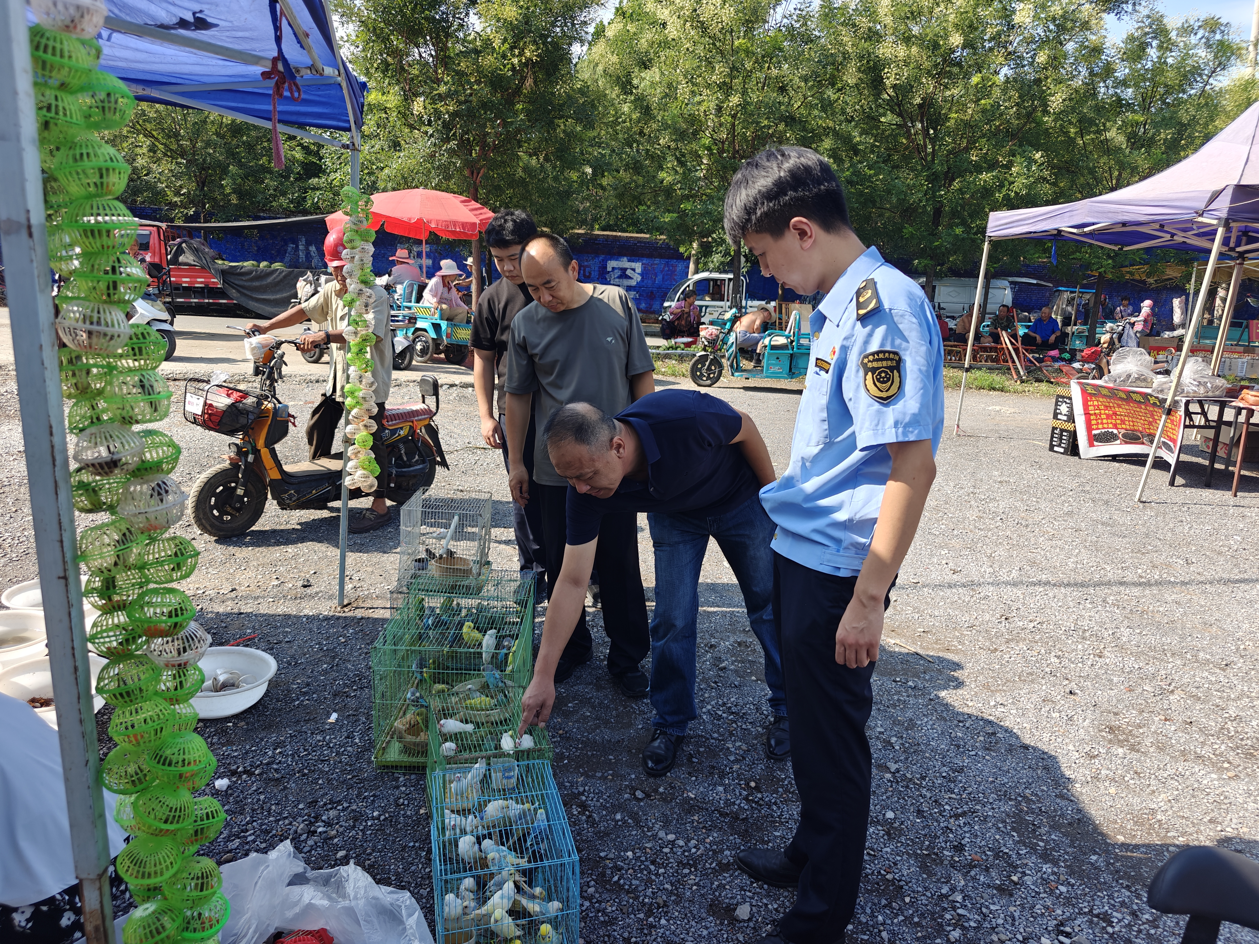 会后,检查组迅速行动,前往萌水镇大集重点检查野生动植物交易情况。在萌水镇大集,检查人员对各类摊位进行细致排查,查看是否存在非法售卖野生鸟类及其制品的行为,向摊主宣传野生动物保护法律法规,提高其保护意识。