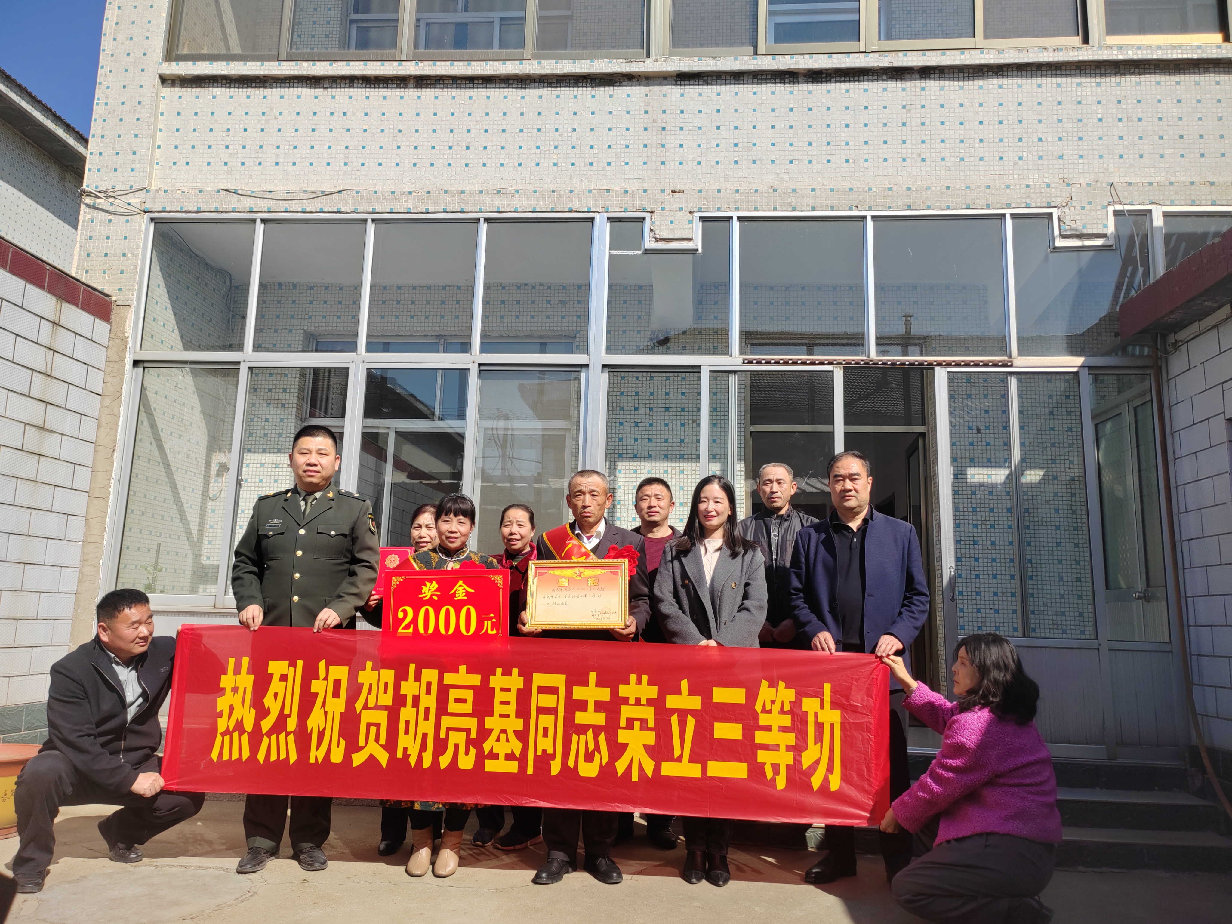 “一人立功,全家光荣!”3月20日,萌水镇、区地方事业局前往龙泉村、北王村,为荣立三等功的现役军人家庭送去立功喜报,颁发喜报、证书、奖章、牌匾。