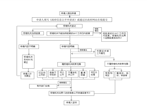 1. 书面提交申请。向本机关申请获取政府信息,应当书面填写《政府信息公开申请表》(以下简称《申请表》)。《申请表》可以从区政府网站下载、打印,复制有效。